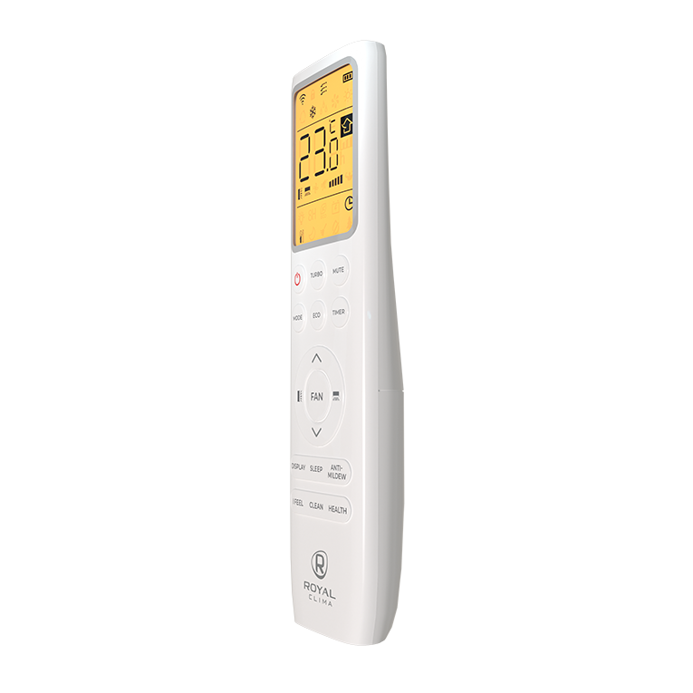 • Эргономичный пульт дистанционного управления с интуитивно понятным управлением и яркой подсветкой дисплея позволяет легко задать необходимые параметры работы сплит-системы.